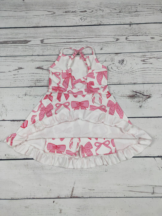 Pink Bow Print Girls Athletic Dresses